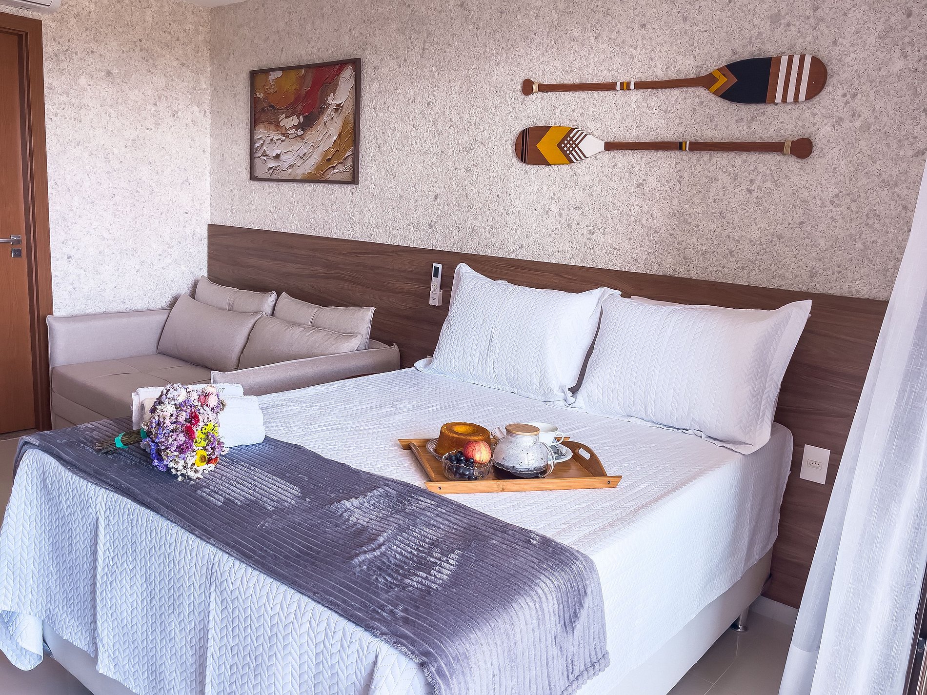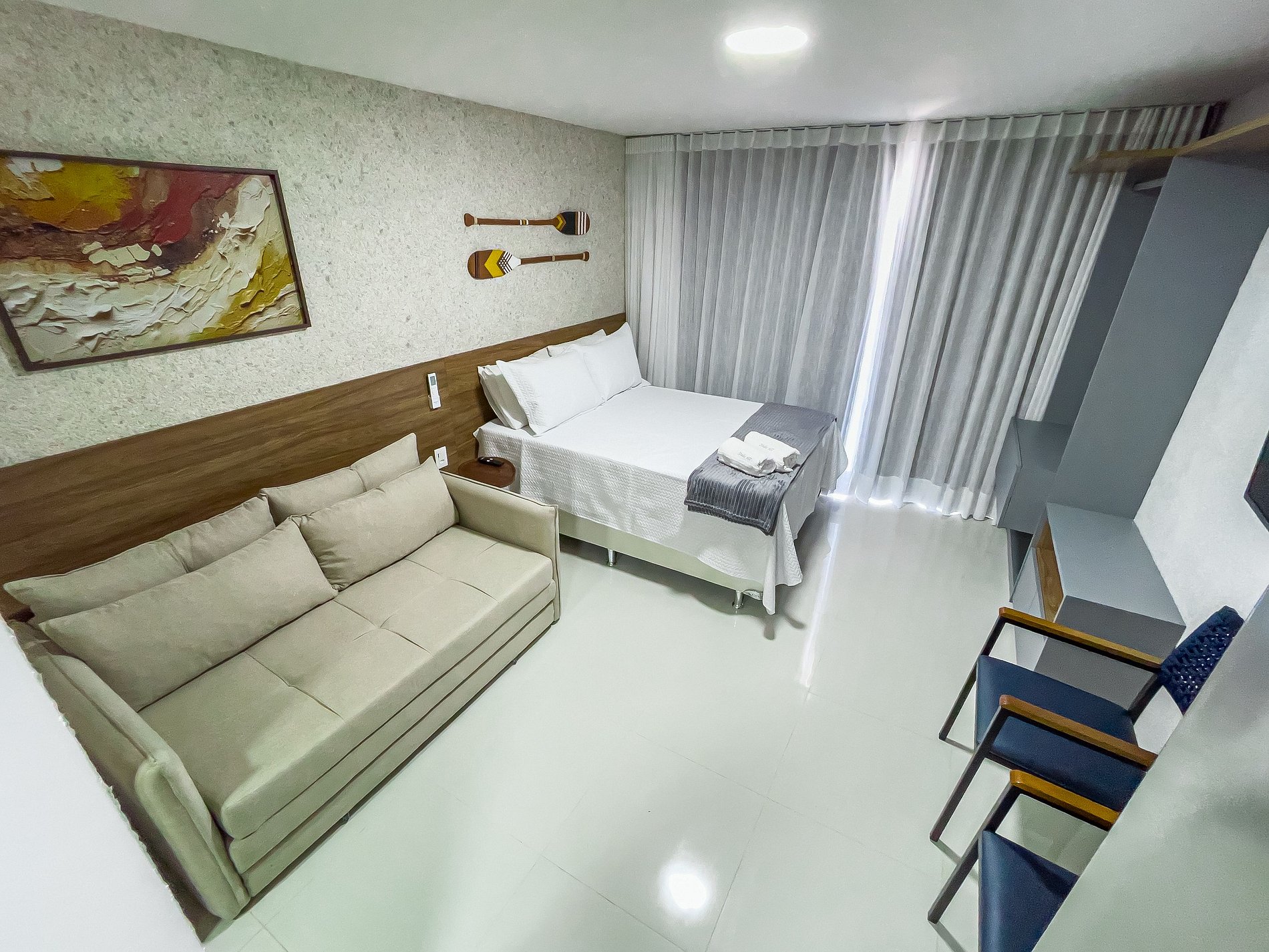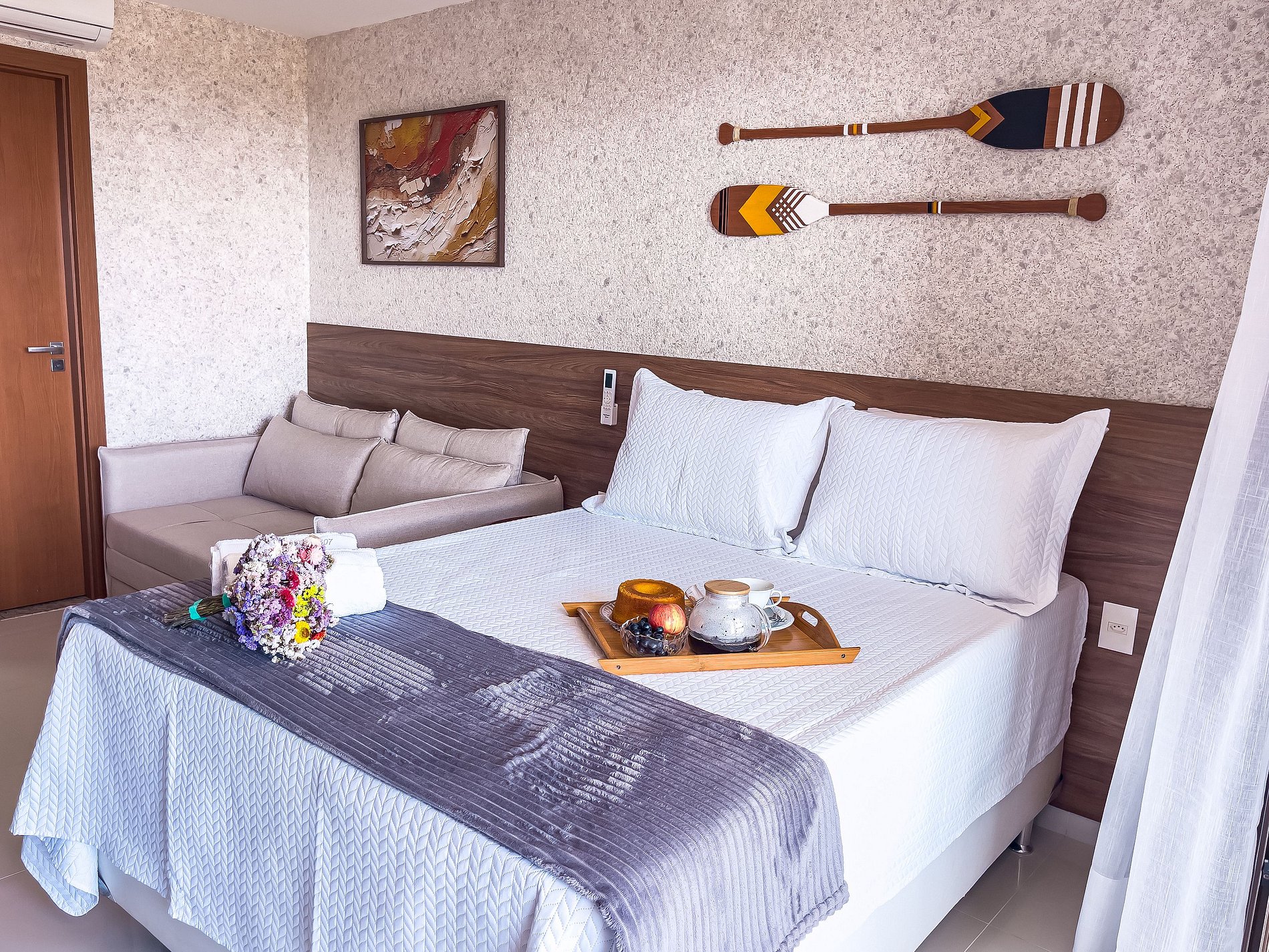 Desfrute de uma estadia encantadora neste studio compacto e moderno no sexto andar do Residencial Ilha de Mykonos, em Salvador. Com aproximadamente 29m², o espaço foi projetado para oferecer conforto e praticidade, sendo ideal para hóspedes que buscam uma experiência autêntica na capital baiana.