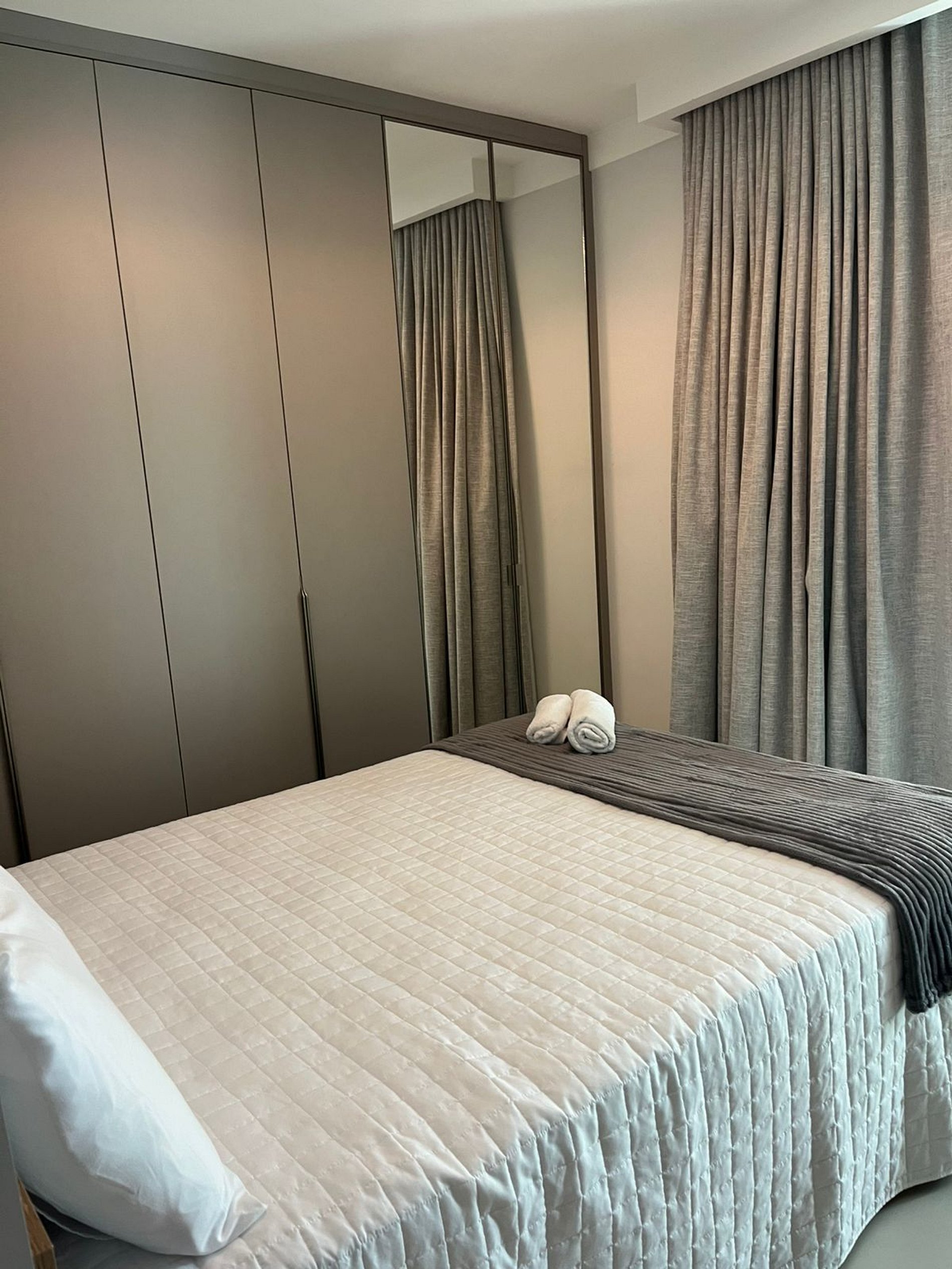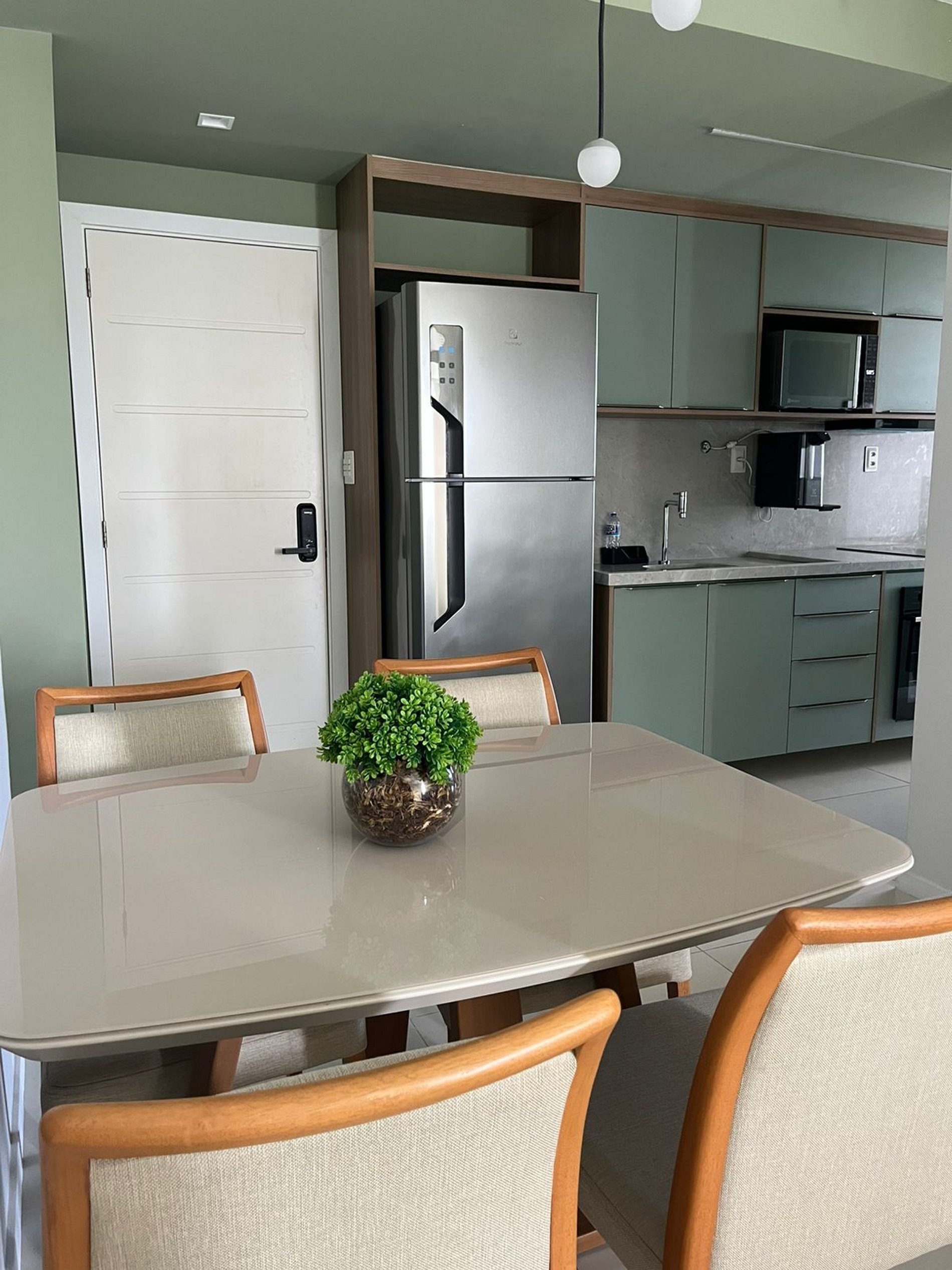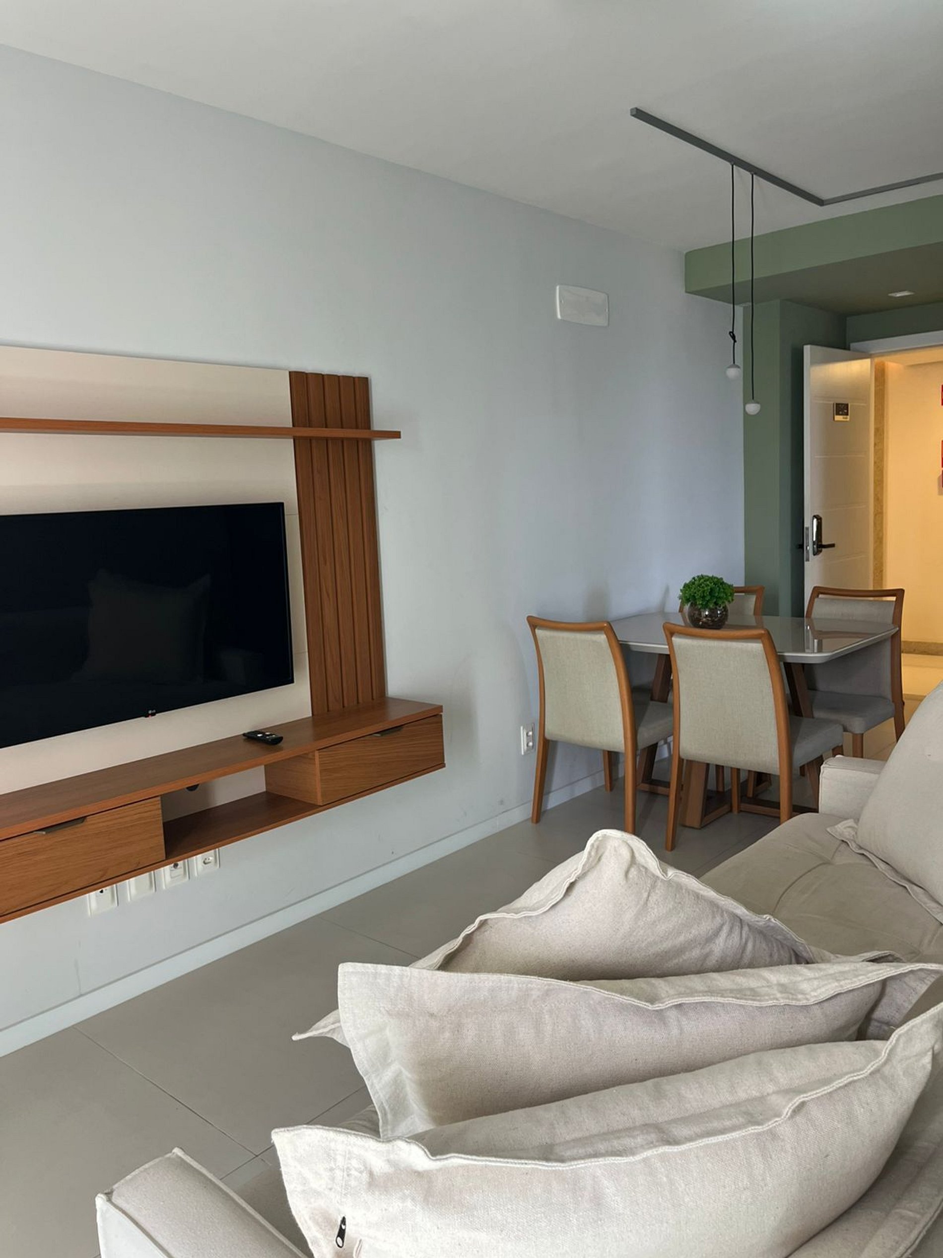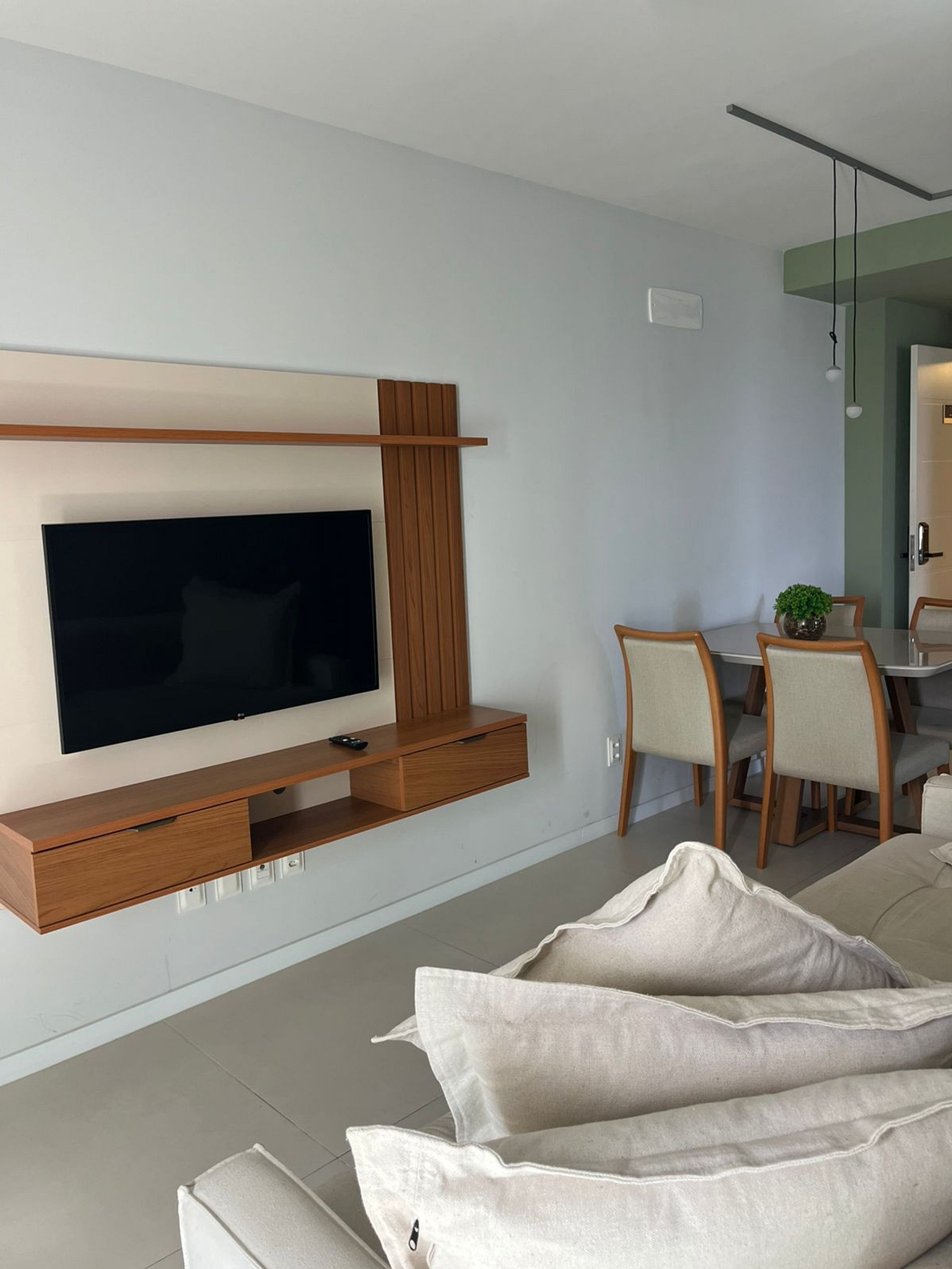 Hospitalidade nos Detalhes: Mobília planejada para otimizar o espaço de 1 quarto, garantindo que a estadia não pareça apertada, mas sim acolhedora.